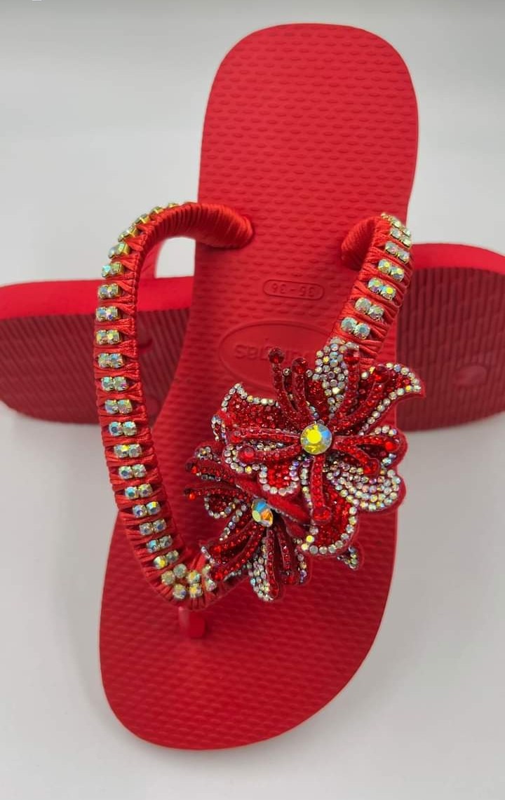 Havaianas originais com flor de strass e evea com strass